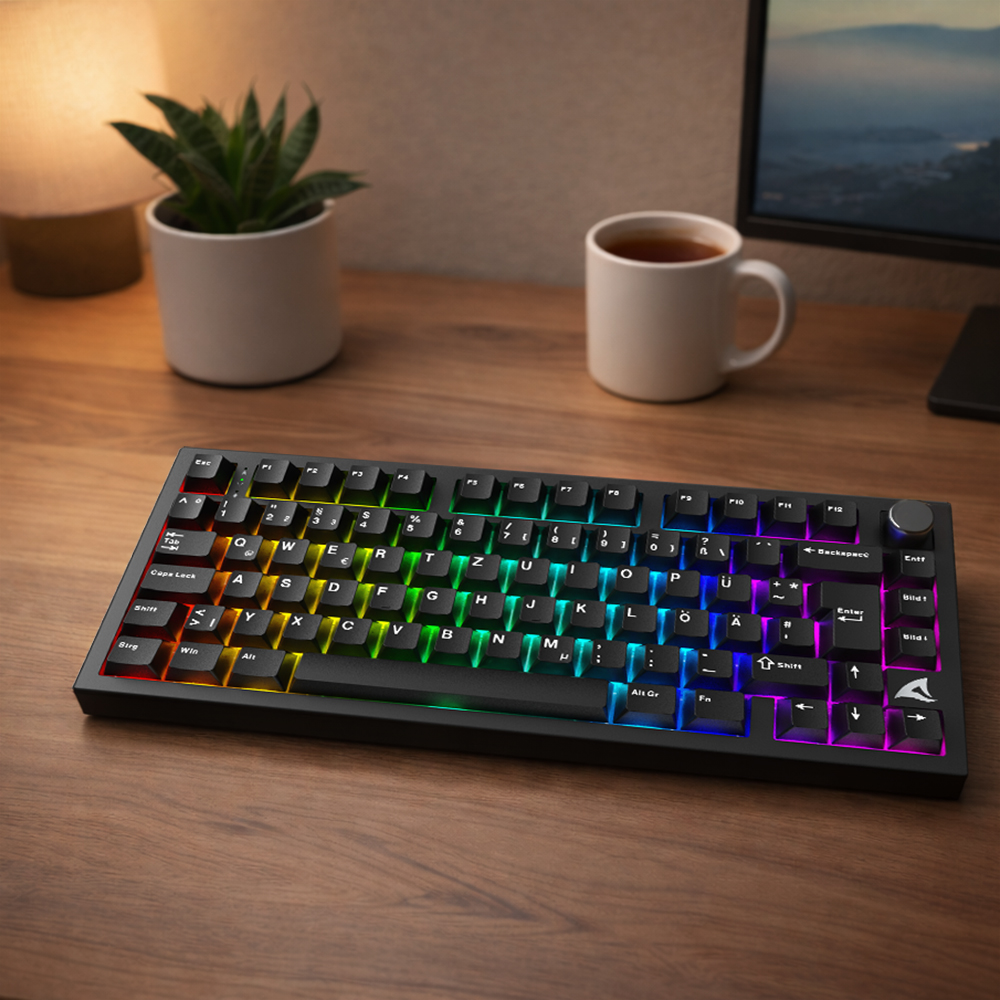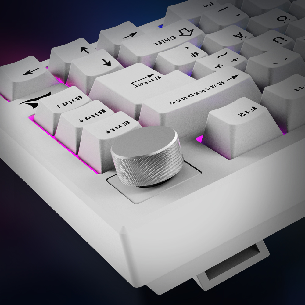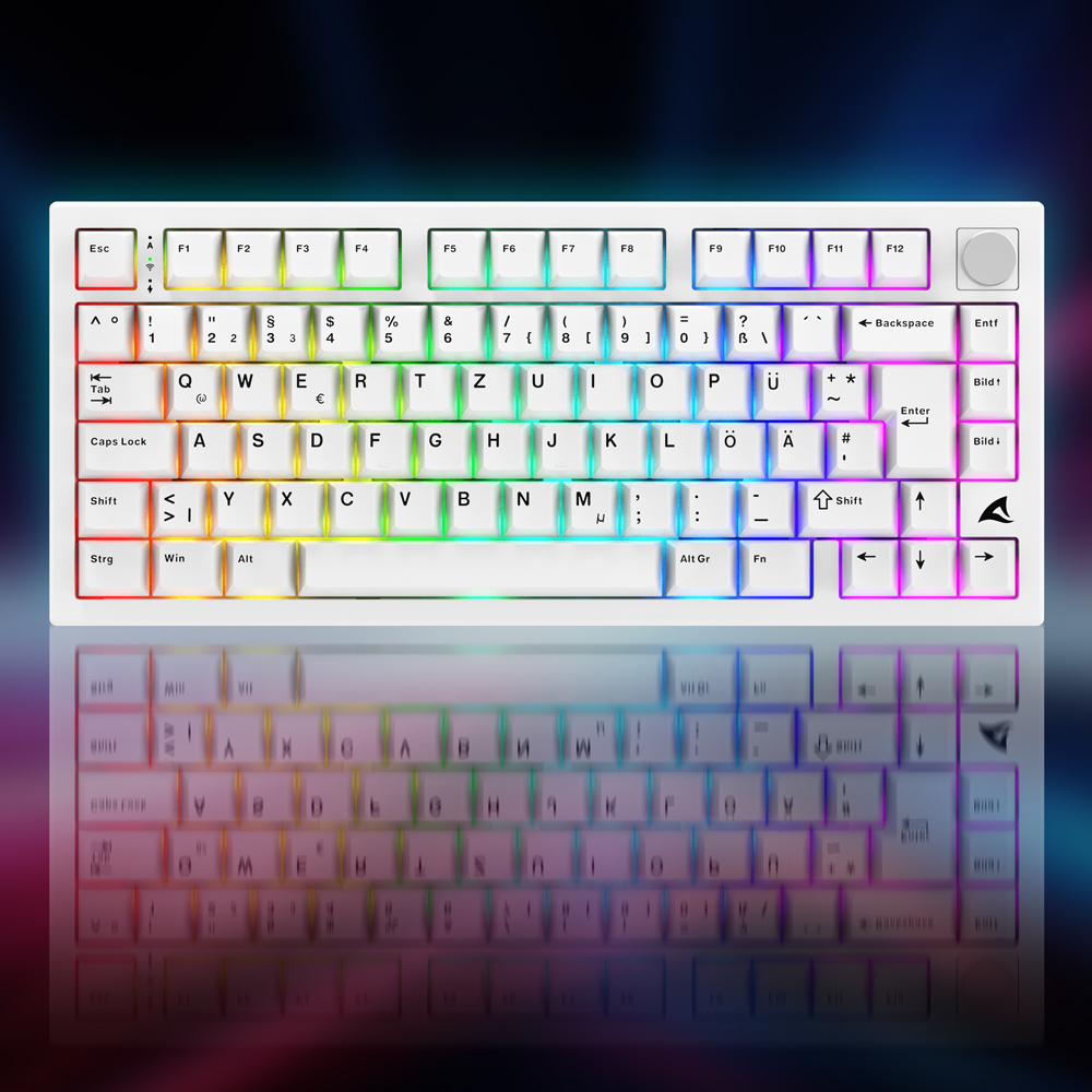 The Skiller SGK55W from Sharkoon takes gaming to a new level: Equipped with a rotary knob for volume control, this elegant 75 % layout is combined with a gasket-mount design for an especially smooth typing experience. In addition, the pre-lubed Sharkoon switches, robust Pbt keycaps, and dynamic ARGB illumination all make this the ideal dual-mode keyboard for those thrilling gaming matches.
