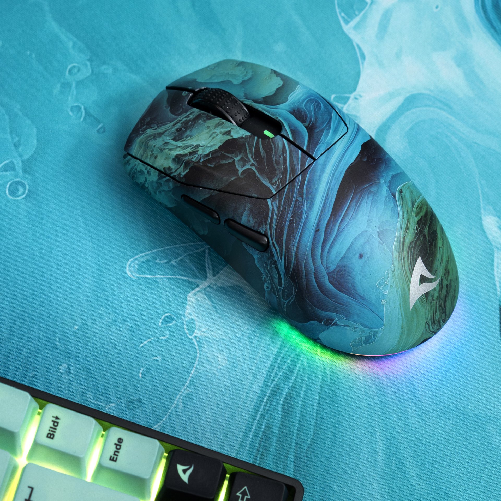 The maritime color design of the Skiller SGM25W Ocean will be a real eye-catcher in your setup. The design is also a matching complement to our Skiller SGK50 S3 Ultimate Rev2 bundle.